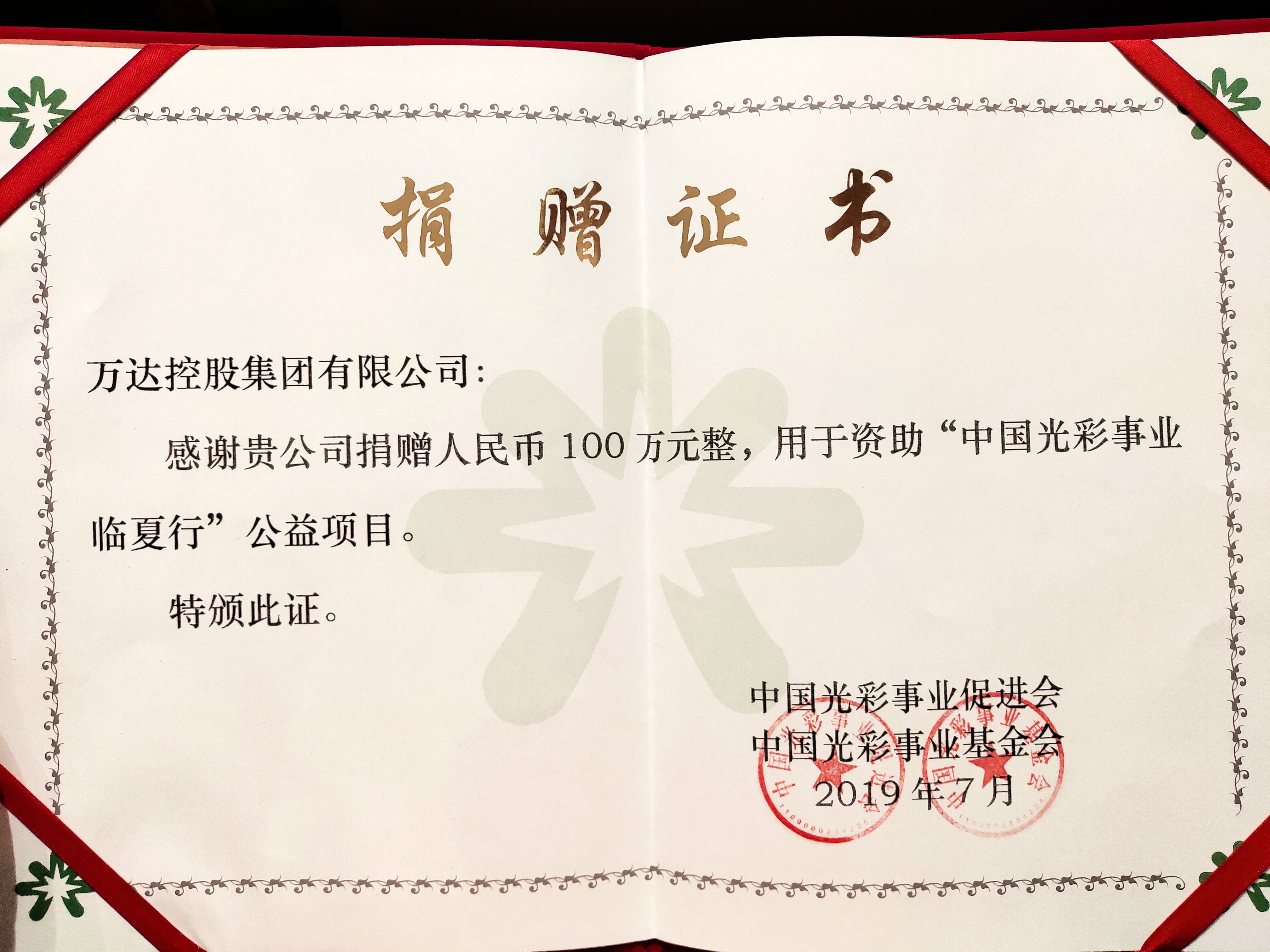 万达集团积极参与“光彩行”活动,本次“中国光彩事业临夏行”,捐赠100万元助力临夏回族自治州脱贫攻坚事业。