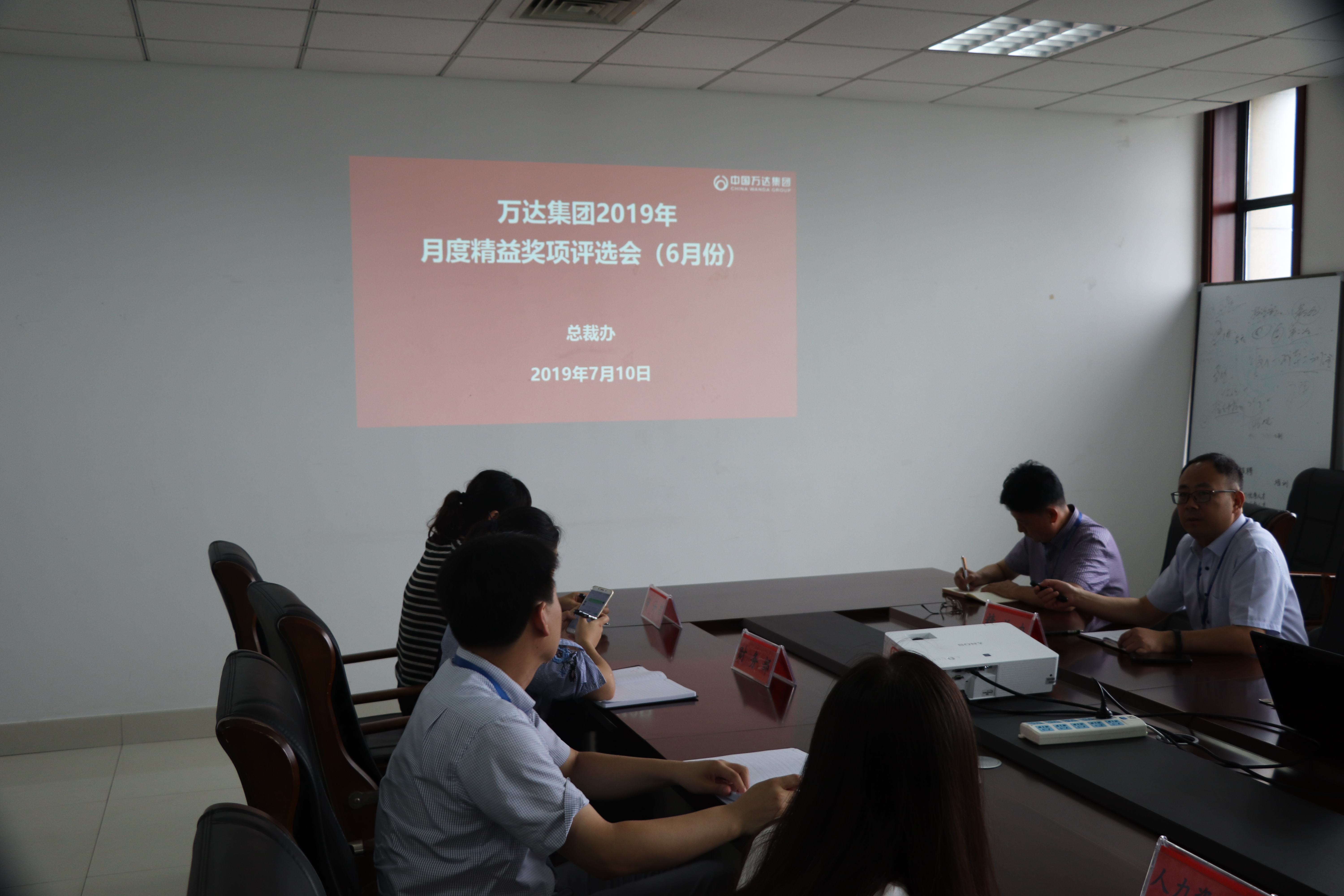 7月10日上午9:30总裁办(精益办)会同财务公司、审计部、集团办公室、集团人力资源部在万达大厦608办公室开展了6月份精益奖项评选。参加本次评选会的人员有精益办成员闫圣利、田宁,审计部代表袁崇双、财务公司代表韩昭君、集团办公室代表黄博辉、集团人力资源部代表刘湘玲。