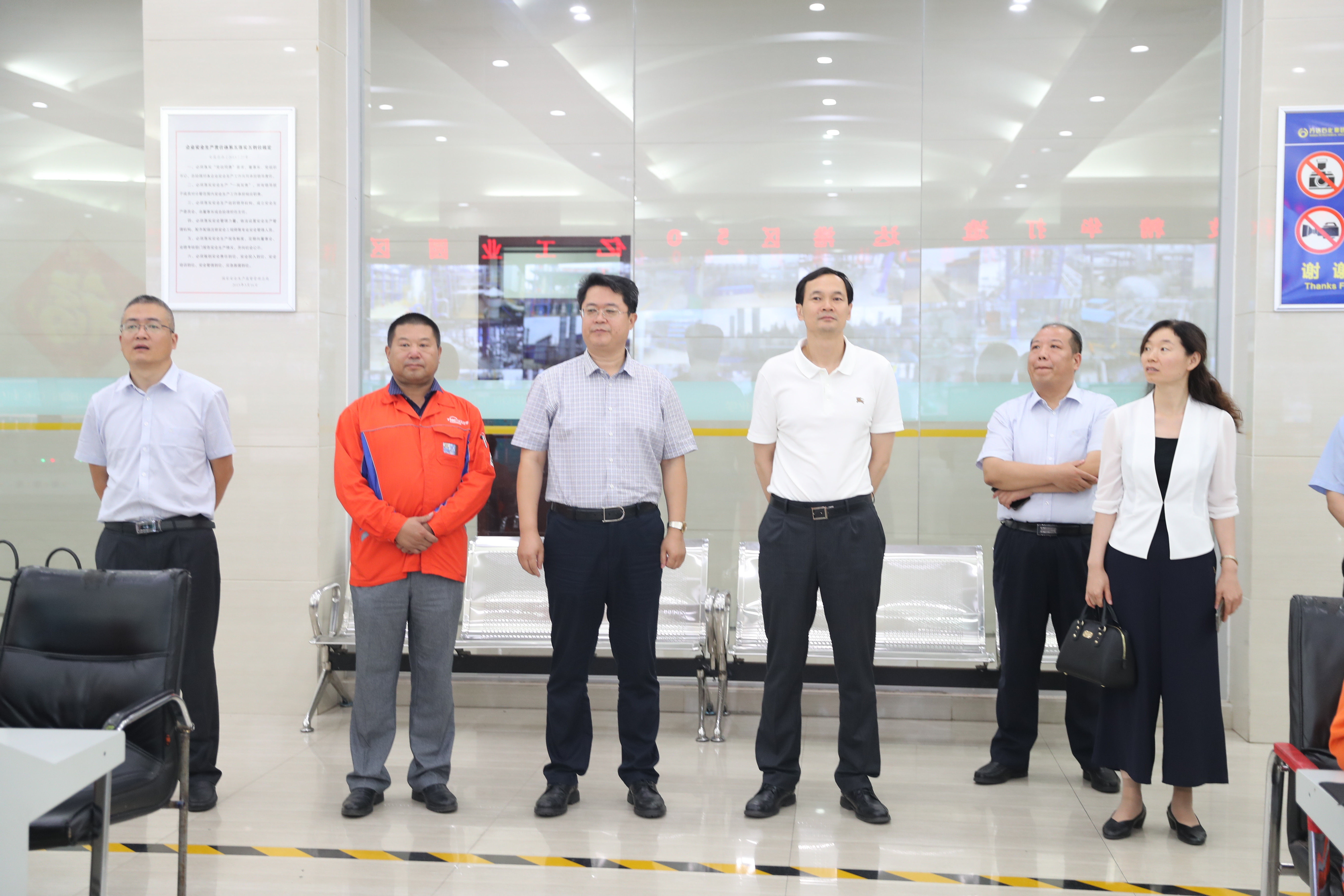 7月10日下午,广发银行山东省分行副行长张峰、风险部总经理张永一行在东营市分行行长王金秀、副行长张岩磊等市行领导陪同下莅临万达石化集团参观考察,集团公司董事局董事、副总裁孙增武,天弘公司总经理邓宗明,宏旭公司总经理黄洪晓等公司领导陪同。