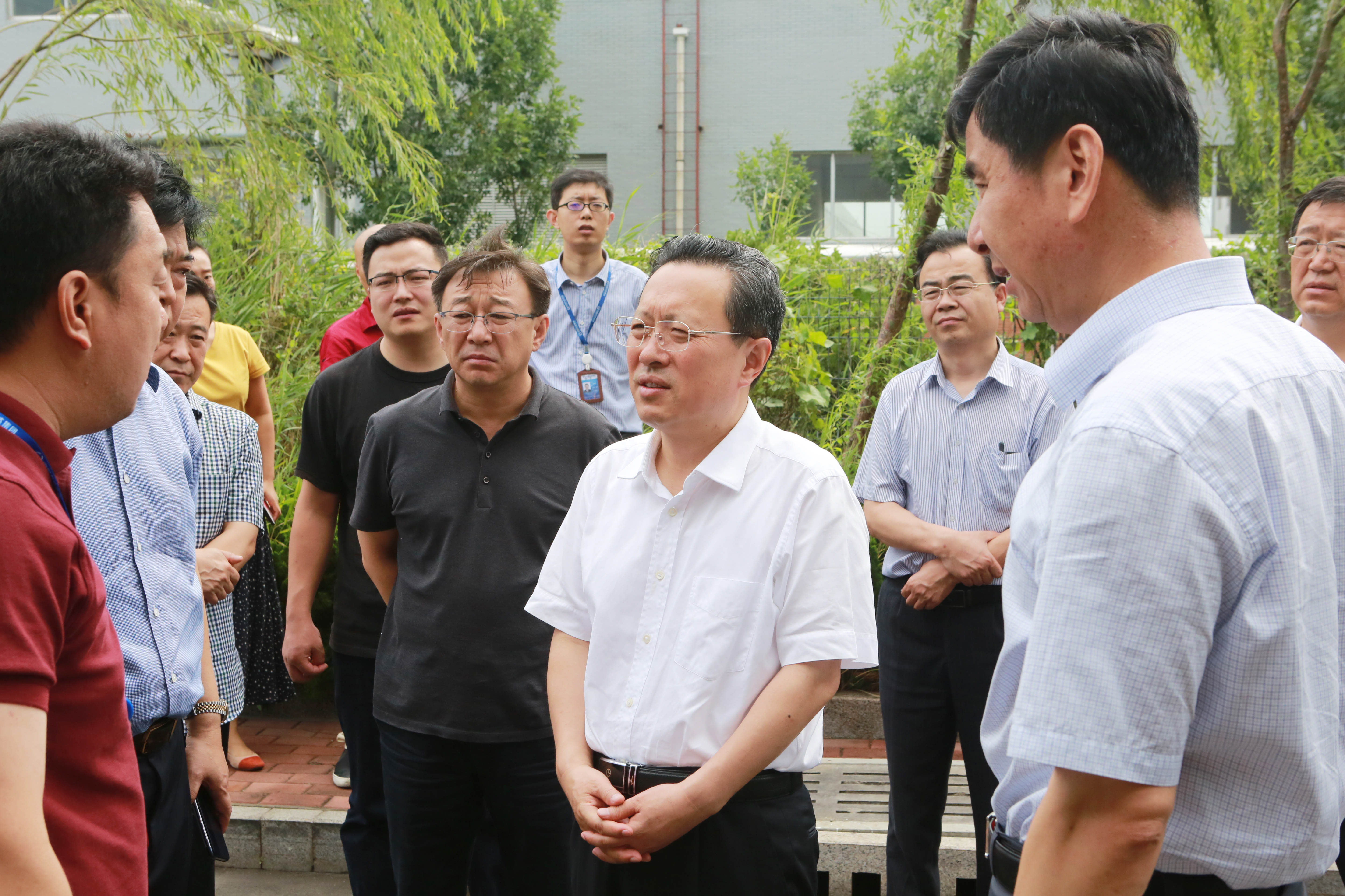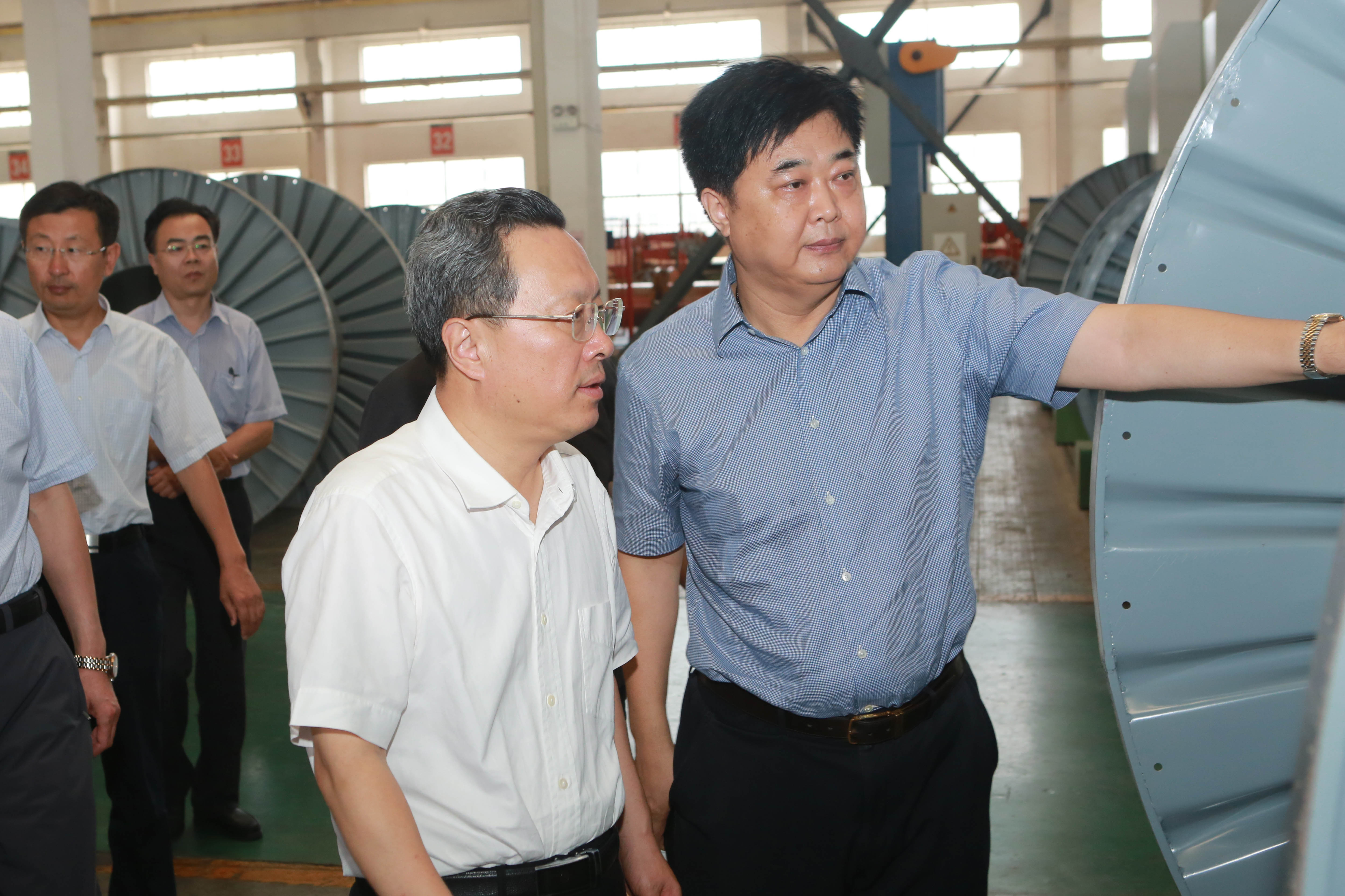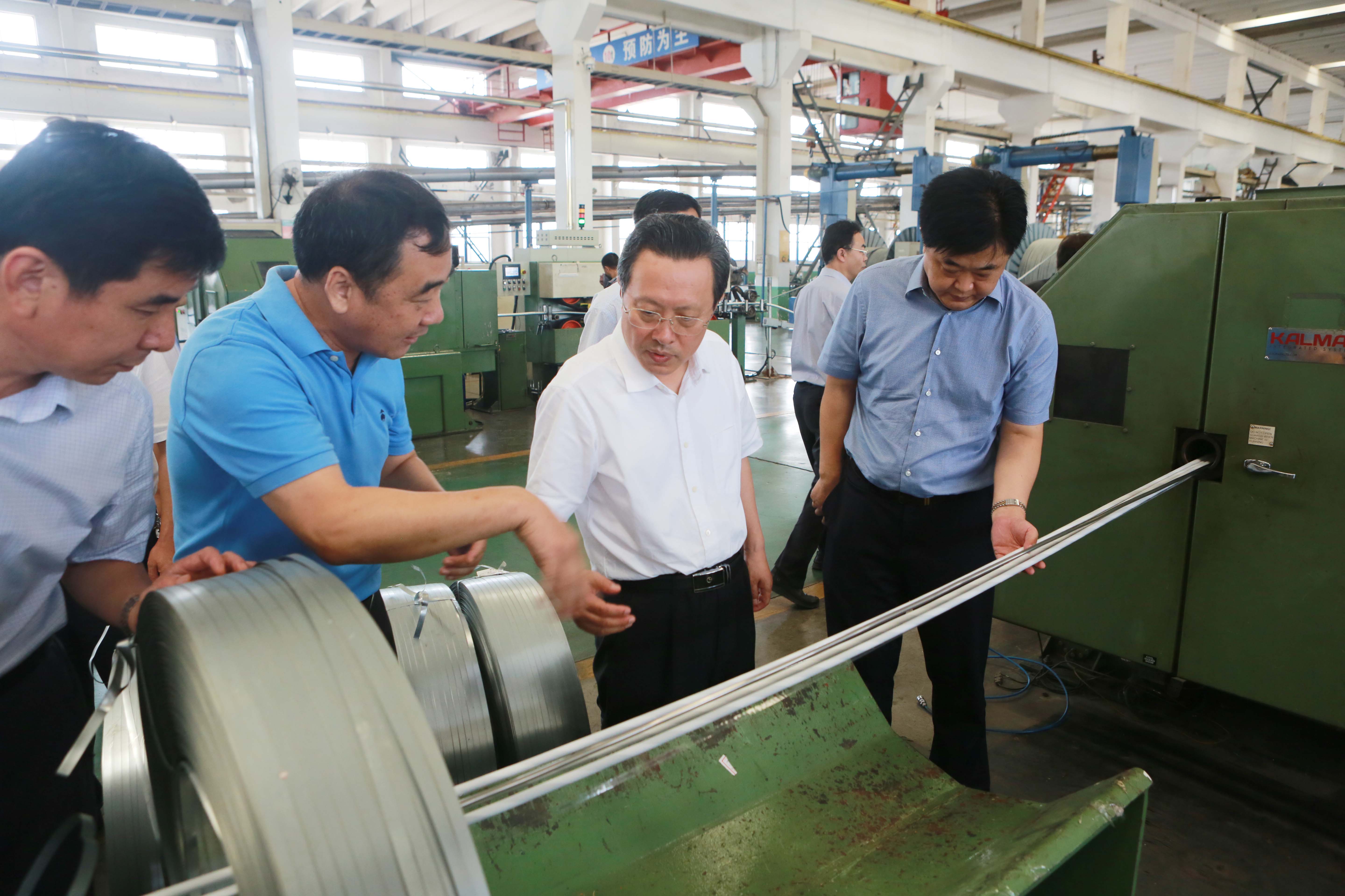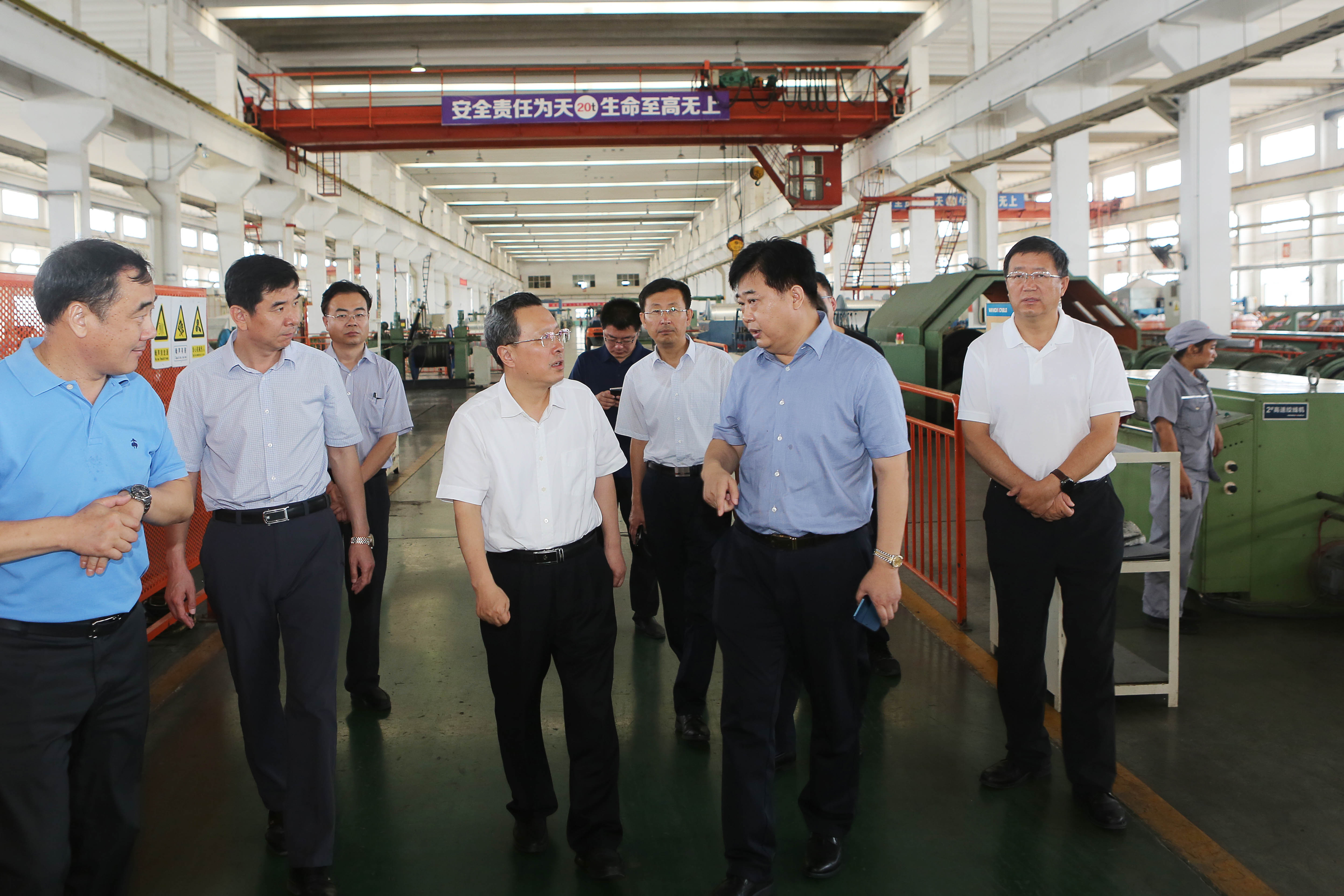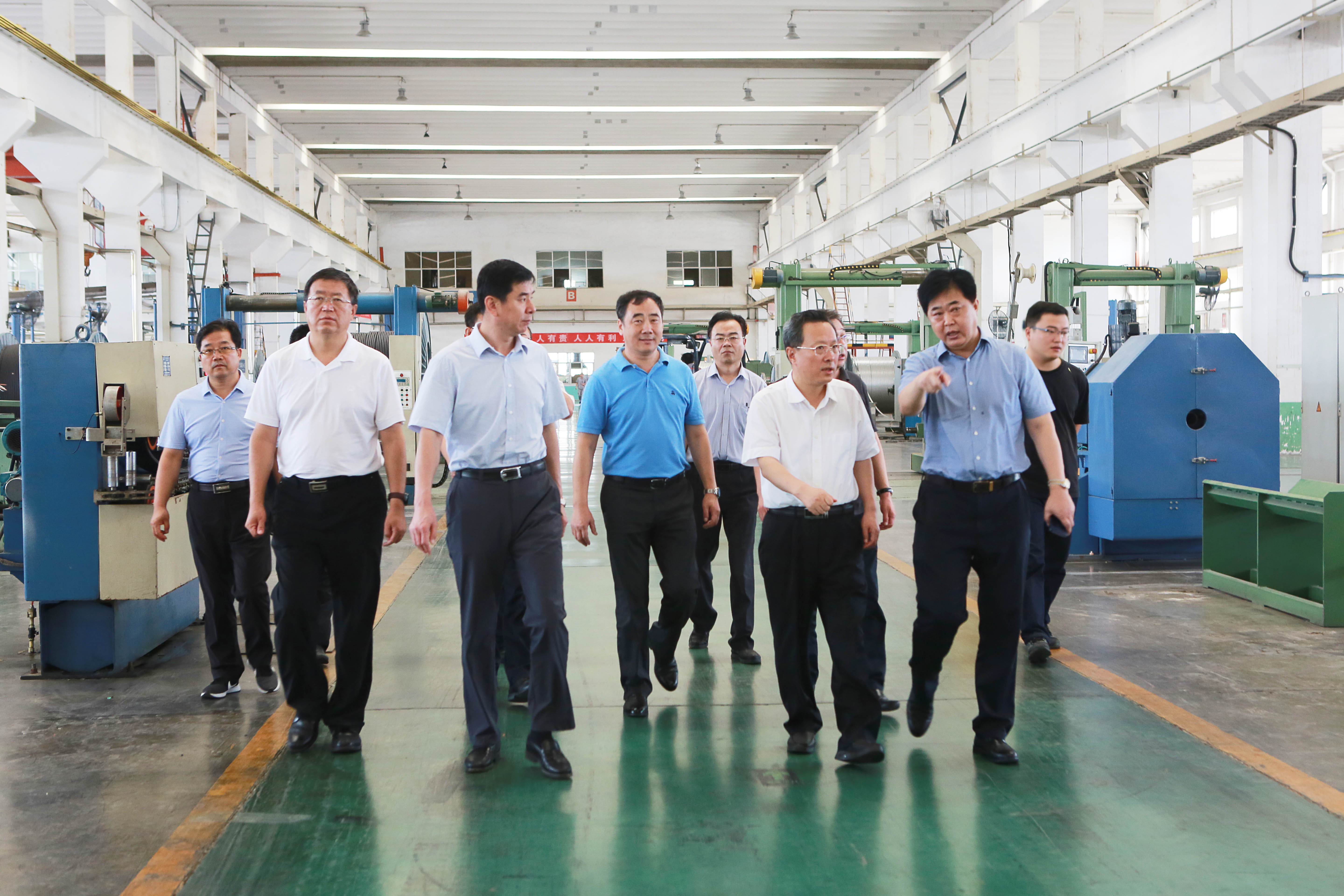 8月16日上午,东营市委副书记、市长赵志远,市政府秘书长郭新民一行,来到万达橡胶工业园区、油矿电缆公司进行实地视察,详细了解企业台风过后的受灾情况和复工复产的进展情况。垦利区委书记刘斯杰,区委副书记、区长马保文,集团公司董事局主席尚吉永,董事局董事、轮值执行总裁巴树山陪同视察。
