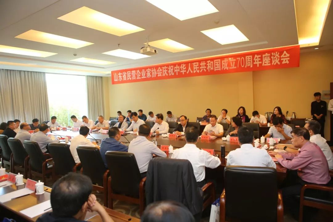 9月21日上午,在山东省民营企业家协会庆祝中华人民共和国成立70周年座谈会上,协会秘书长李吉祥向协会汇报了近期工作重点和主要成绩。会议过程中,企业家们发表了各自看法,大家一致认为,没有共产党就没有新中国,没有改革开放就没有民营经济的今天,没有中国特色社会主义制度就没有中华民族繁荣发展,大家将自觉做新时代中国特色社会主义建设者,围绕全省“八大发展战略”和“十强”产业发展,不忘初心,牢记使命,凝聚改革创新共识,推动结构调整和转型升级,以崭新的面貌在建设新时代现代化强省的新征程中,展现新担当、实现新作为,为我省加快新旧动能转换、实现高质量发展再立新功。