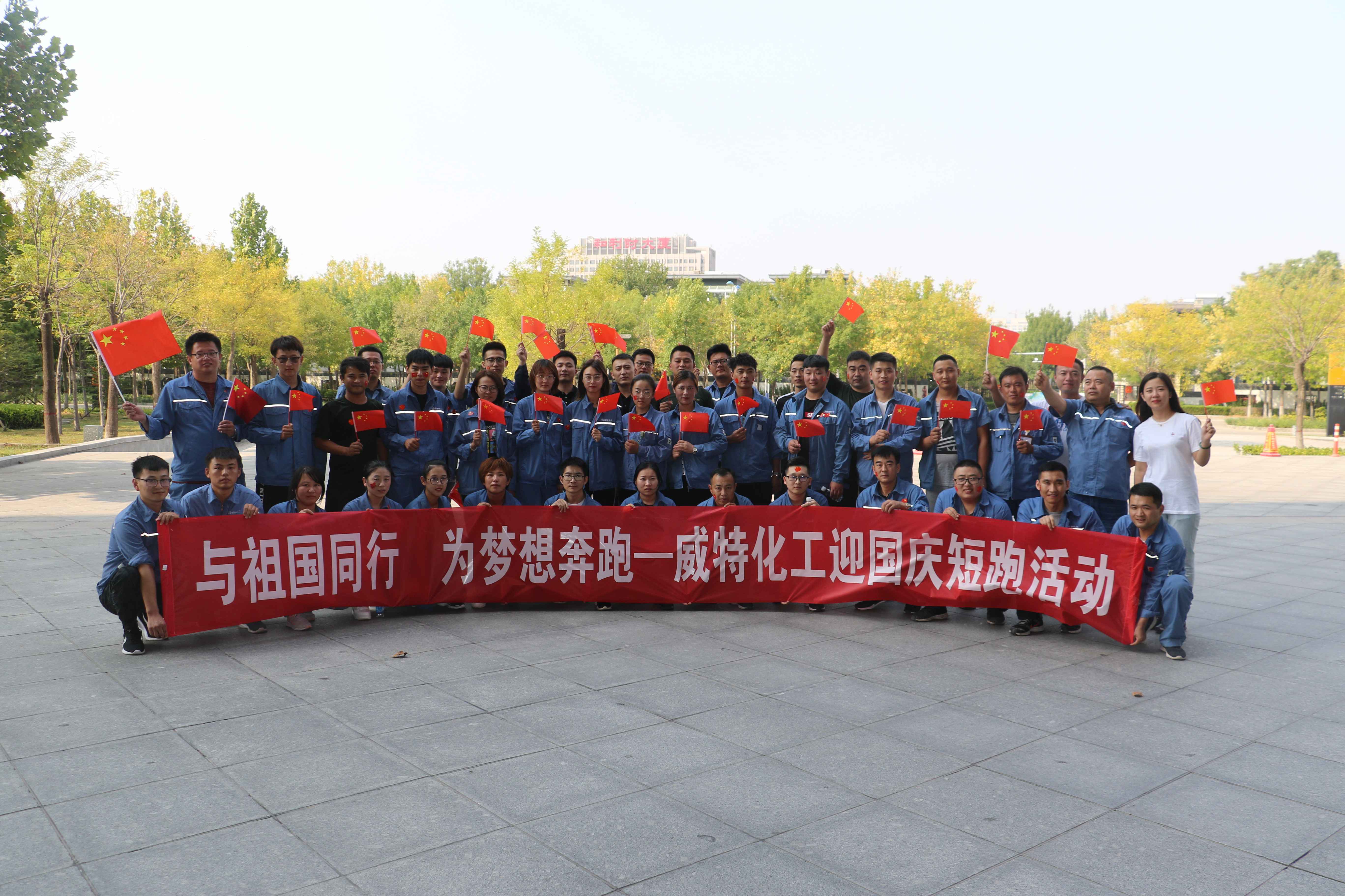 天高云淡,金风送爽。在举国上下喜迎新中国七十华诞之际,石化集团威特化工于9月28日在垦利区民丰湖举行了以“与祖国同行,为梦想奔跑”为主题的短跑活动。总经理张振伟、各部门负责人及员工共50余人参加了活动。