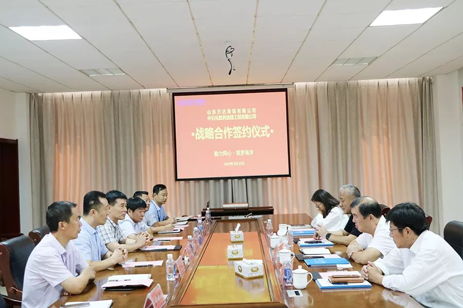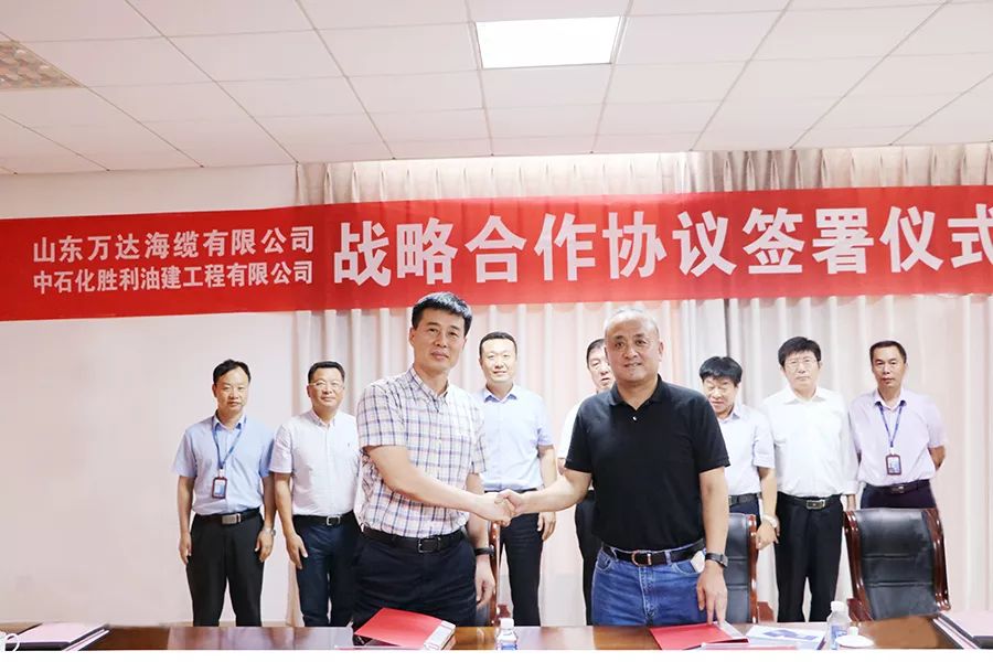 9月25日,中国万达集团下属山东万达海缆有限公司(以下简称“万达海缆”)与中石化胜利油建工程有限公司(以下简称“胜利油建”)就海缆敷设施工、海上风电项目开拓等业务达成战略合作,双方洽谈签约仪式在山东东营港区万达海缆基地隆重举行。