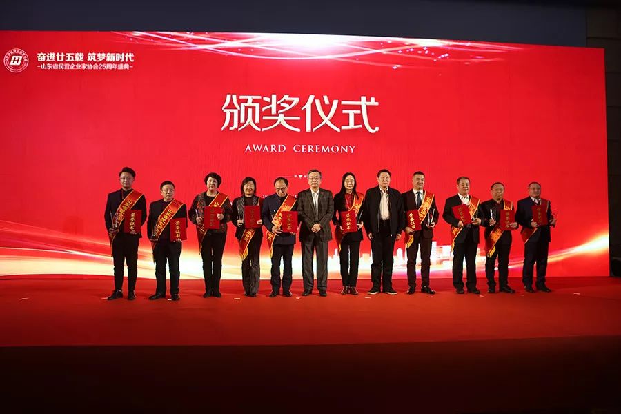 12月13日,山东省民营企业家协会成立25周年庆典活动在山东大厦隆重举行。山东省委常委、省委统战部部长张江汀,省政协原副主席、省工商联原主席王乃静,省委统战部原常务副部长孙传宏,省委统战部副部长、省工商联党组书记、常务副主席周云平,省委统战部原副部长、省工商联原党组书记、常务副主席孙孺声,山东省工商联副主席、省民营企业家协会会长、万达集团党委书记、董事局主席尚吉永及友好商会代表、山东省民营企业家协会优秀企业家代表350余人参加此次盛会。