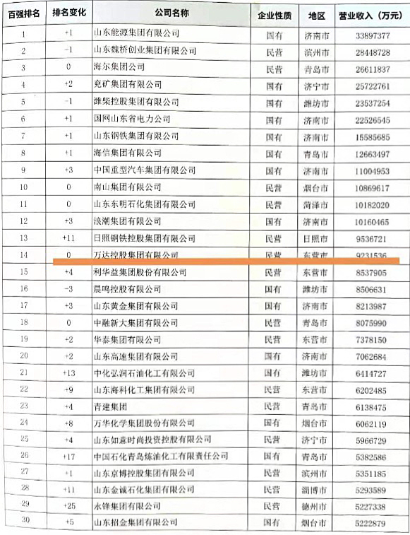 12月19日,由山东省企业联合会、山东省企业家协会和山东省工业经济联合会联合主办的“2019山东百强企业发展论坛暨企业管理创新经验交流会”在泰安市举行,会上发布了山东百强企业和工业百强企业榜单。万达集团同时位列山东百强企业、工业百强企业榜单第14位。