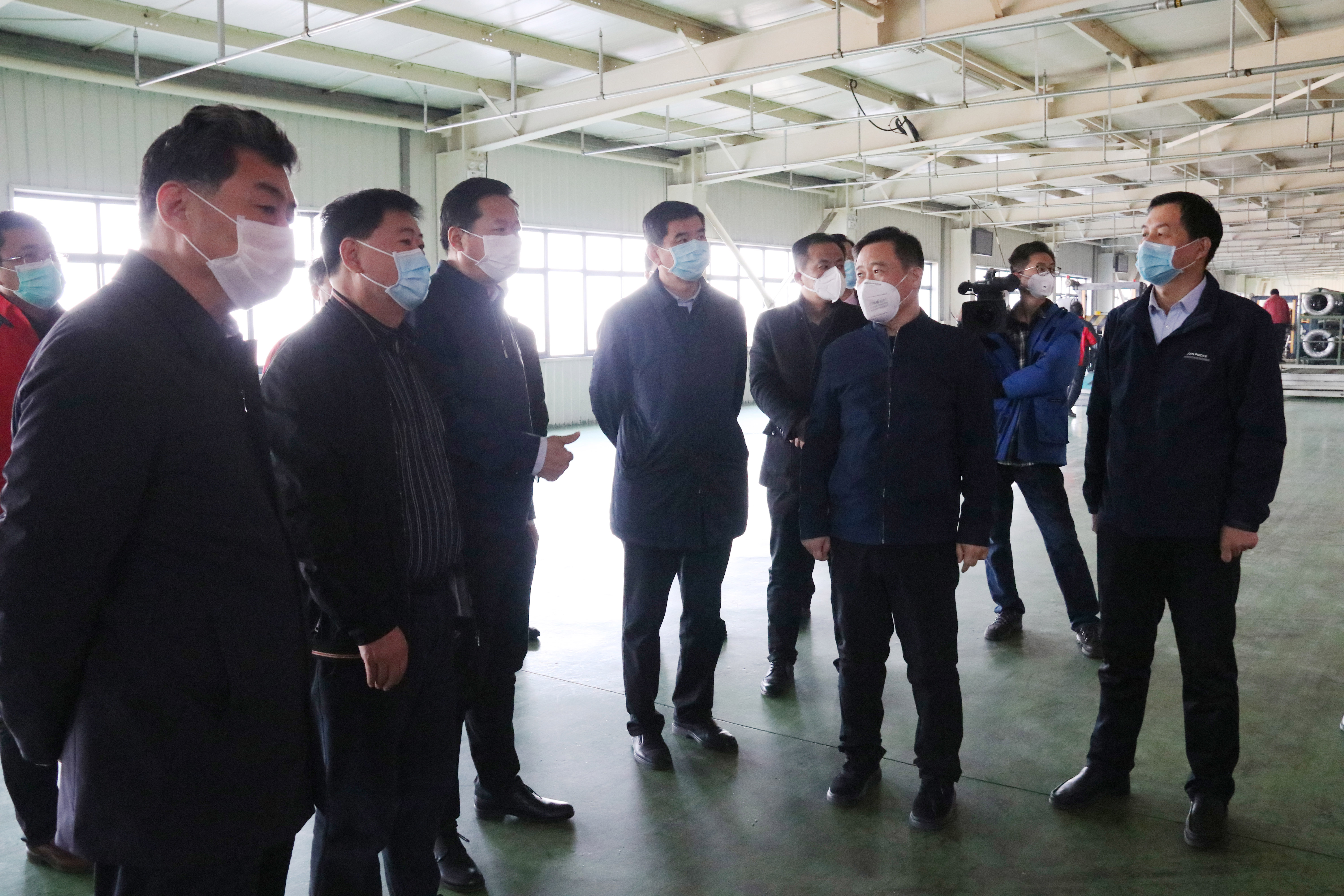 2月20日上午,省工信厅二级巡视员张乃君带队省委经济运行应急保障指挥部工业运行组到万达集团督导企业开复工疫情防控体系工作。他强调,在毫不松懈地抓好防疫工作的同时,扎实组织好企业复工复产工作,坚决做到疫情防控和经济运行“两手抓、两不误”,以发展保防控、保供给,以防控促生产、促市场、促供应。
