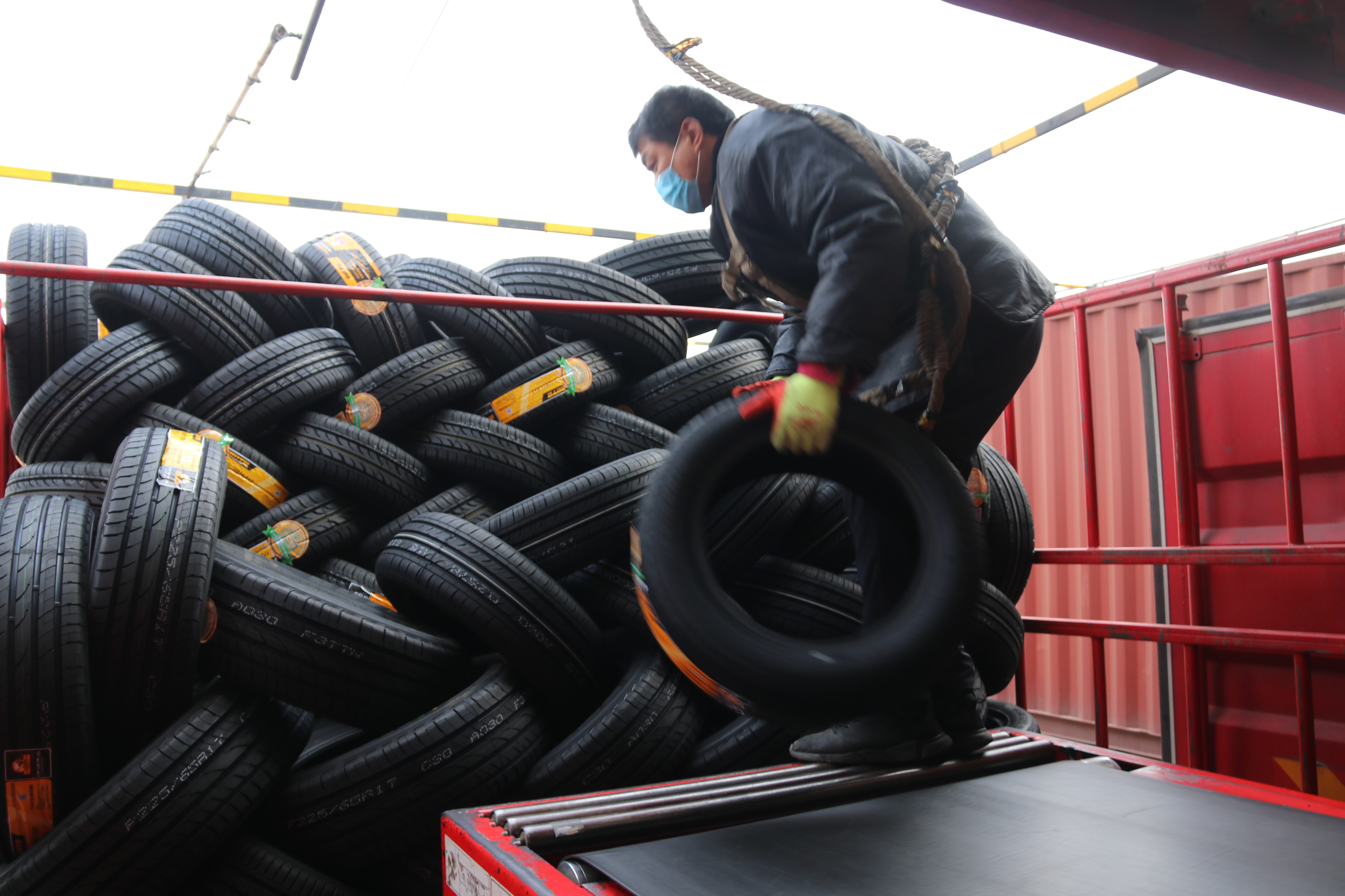 2月26日,在万达宝通轮胎智能化立体仓库,装车区一派忙碌的景象,员工们戴着口罩正在忙碌有序地作业。自复工复产以来,公司订单和发货持续不断,单日发货量逐步提升,现在每天将有超过50000条轮胎在这里装车发货。