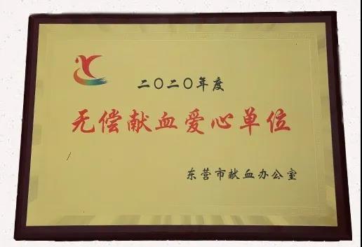 本次无偿献血活动,万达集团被东营市献血办公室授予“二0二0年度无偿献血爱心单位”荣誉称号。万达集团的员工们用实际行动传递正能量,演绎了一场“爱的奉献”,通过献血活动,在奉献自己微薄之力的同时也展现了万达集团积极参与社会公益事业的良好形象。无偿献血是终身的荣誉,无偿献血者应受到社会的尊重和爱戴,让我们一起为爱守护,热血前行,向他们致敬!