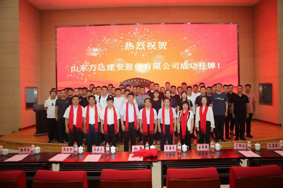2020年7月6日10:58分,山东万达建安股份有限公司股权专场挂牌仪式在齐鲁股权交易中心多功能厅隆重进行。齐鲁股权交易中心副总裁赵勇、垦利区人民政府副区长王国元,万达集团董事局副主席、轮值执行总裁尚建立出席仪式并致辞。