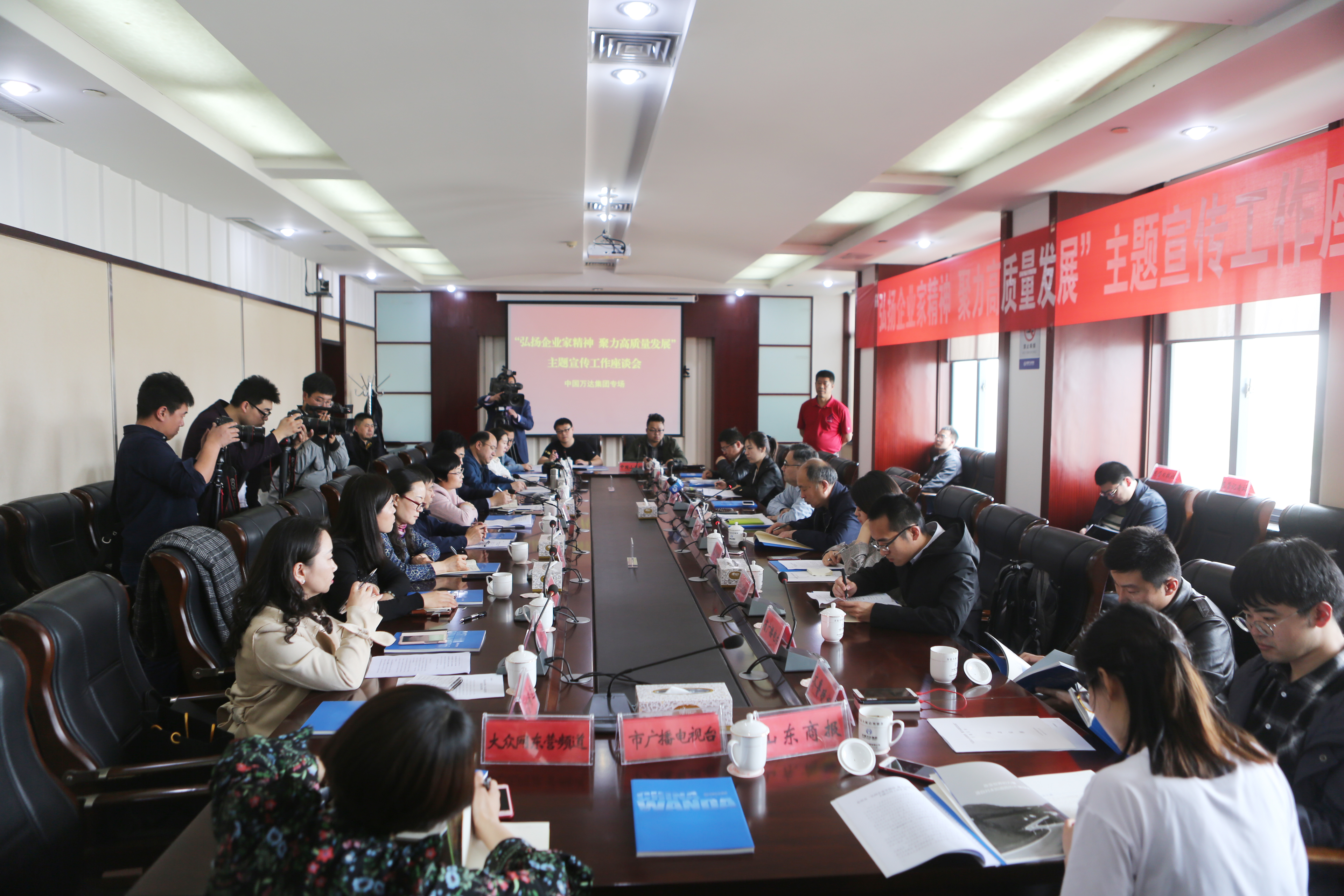 4月11日,由山东省委宣传部企业宣传处处长李庆义带队“弘扬企业家精神 聚力高质量发展”主题宣传团走进中国万达集团进行采访。宣传团由山东省委宣传部宣传处、东营市委宣传部、垦利区委宣传部及齐鲁网、大众日报、齐鲁晚报等20多家报社媒体记者组成,宣传团一行参观完了万达宝通1500万条/年半钢胎项目后,就中国万达集团经营发展状况、科技技术创新、产业一体化理念、新模式新业态跨界融合、新旧动能转换以及企业核心价值观等方面进行了深入座谈,并对中国万达集团董事局主席尚吉永进行了专访。尚吉永主席表示万达三十年的持续健康跨越式发展,得益于各级党委政府和社会各界的关心帮助,以及媒体界朋友的关注支持,自身能够在复杂多变的环境中审时度势,精准发力,主动求变企业不断地转型升级和创新发展。在发展中,万达集团按照“以科技为先导、打造港口物流石化橡胶一体化、形成相关多元发展的产业格局”发展战略,万达坚守“永远创业,永不守业,不做最大的企业,做最健康的企业”的发展理念,始终以创业者的姿态不间断的创新创造,打造一个与时创新的万达,富有活力的万达。