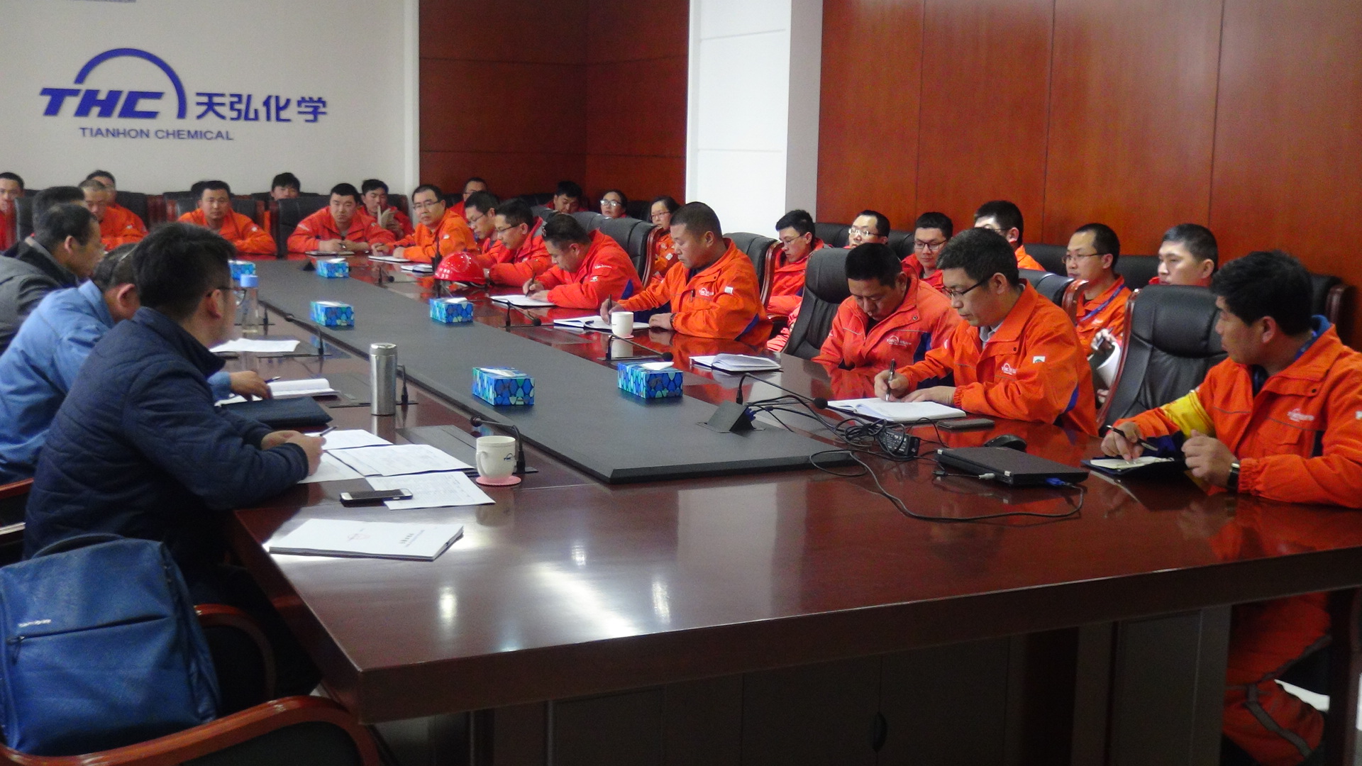 2018年4月12日-13日,山东省思威化学品安全评价中心委托张宗浩、张敏、尤喜中、尚玉华4名省级专家对山东天弘化学有限公司进行三级安全生产标准化达标工作进行复审评价,经专家组评议,对天弘公司的安全生产工作予以肯定,一致同意通过复评工作。集团总裁助理、天弘公司董事长李东波、天弘公司总经理邓宗明、石化集团安全环保事业部总监张伟等参加了首末次会议。