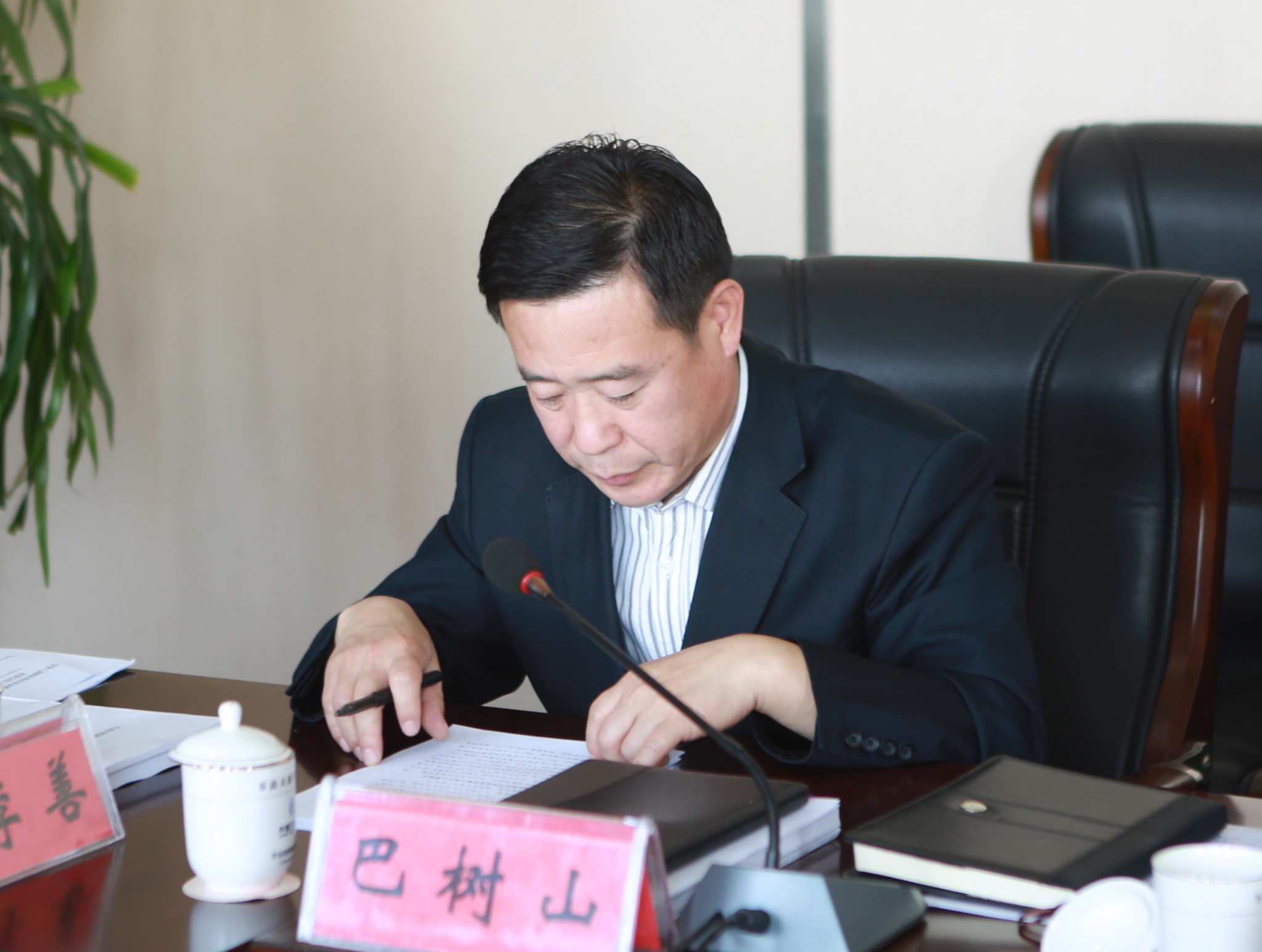 巴树山详细汇报了企业发展情况、对民营经济高质量发展的认识、企业的做法、发展过程中存在的问题、意见和建议。