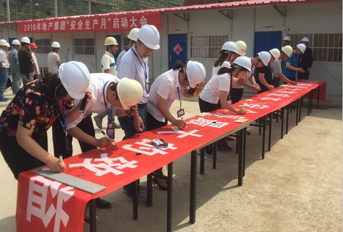 地产集团一线及后勤员工踊跃到“安全生产月”承诺条幅上签名,表明了“提高安全意识、遵章守纪从我做起”的信心与决心。