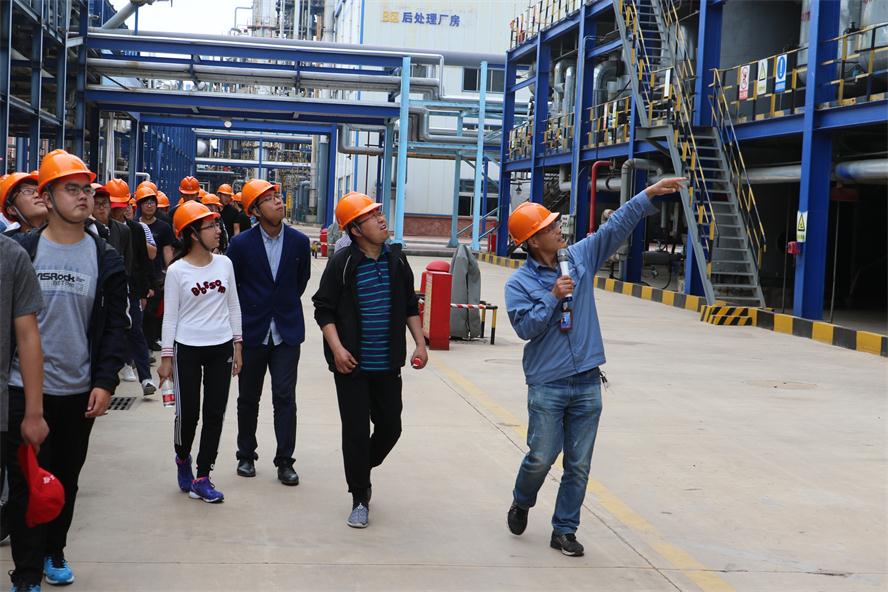 公司各领导首先带领师生朋友们参观了办公环境,并在三楼会议室设置会场,由技术质量部经理巩飞向师生介绍了万达集团、万达石化集团、威特化工公司的基本情况以及企业文化、职工福利待遇、发展前景等。为了更好的让学生体验参观效果,公司领导带领师生深入公司生产车间进行了参观,总工程师谭彦智详细为大家介绍了烷基化装置、前后乙腈生产等装置的生产流程和主产产品,讲解了各环节的技术要素及管理关键,让同学们真实了解了科学的生产操作流程及产品生产的关键路径。