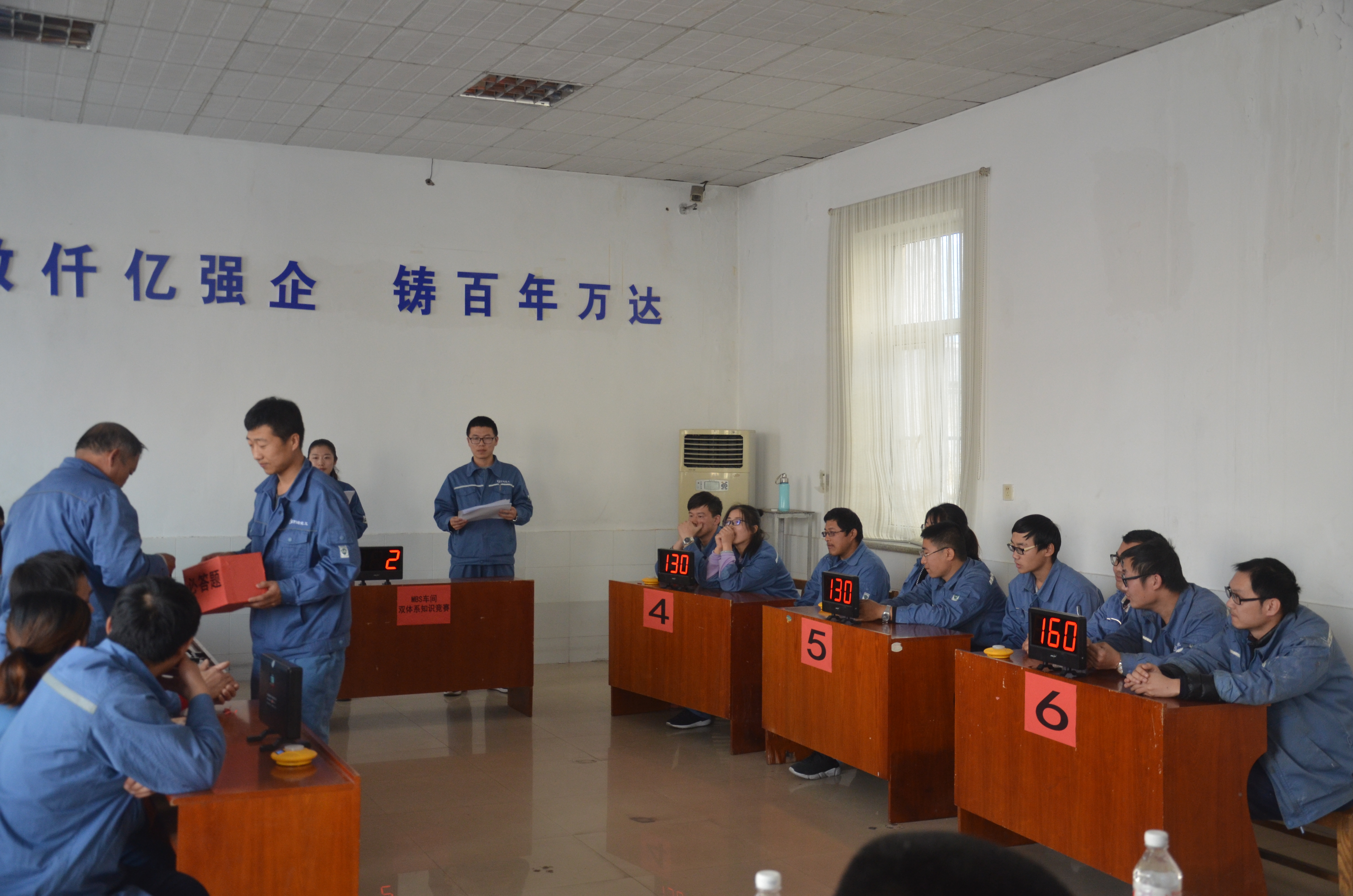 比赛结束后,周总对答题人员现场提问,考验员工掌握情况。巴总对此次活动进行点评,并对下一步工作进行部署。本次知识竞赛充分发挥了车间员工对双体系学习的积极性,使大家在观赏比赛的同时,接受了一次全面教育,激发了专心学习,务实工作的斗志,落实隐患排查体系,真正把双体系建设融入到工作中去。