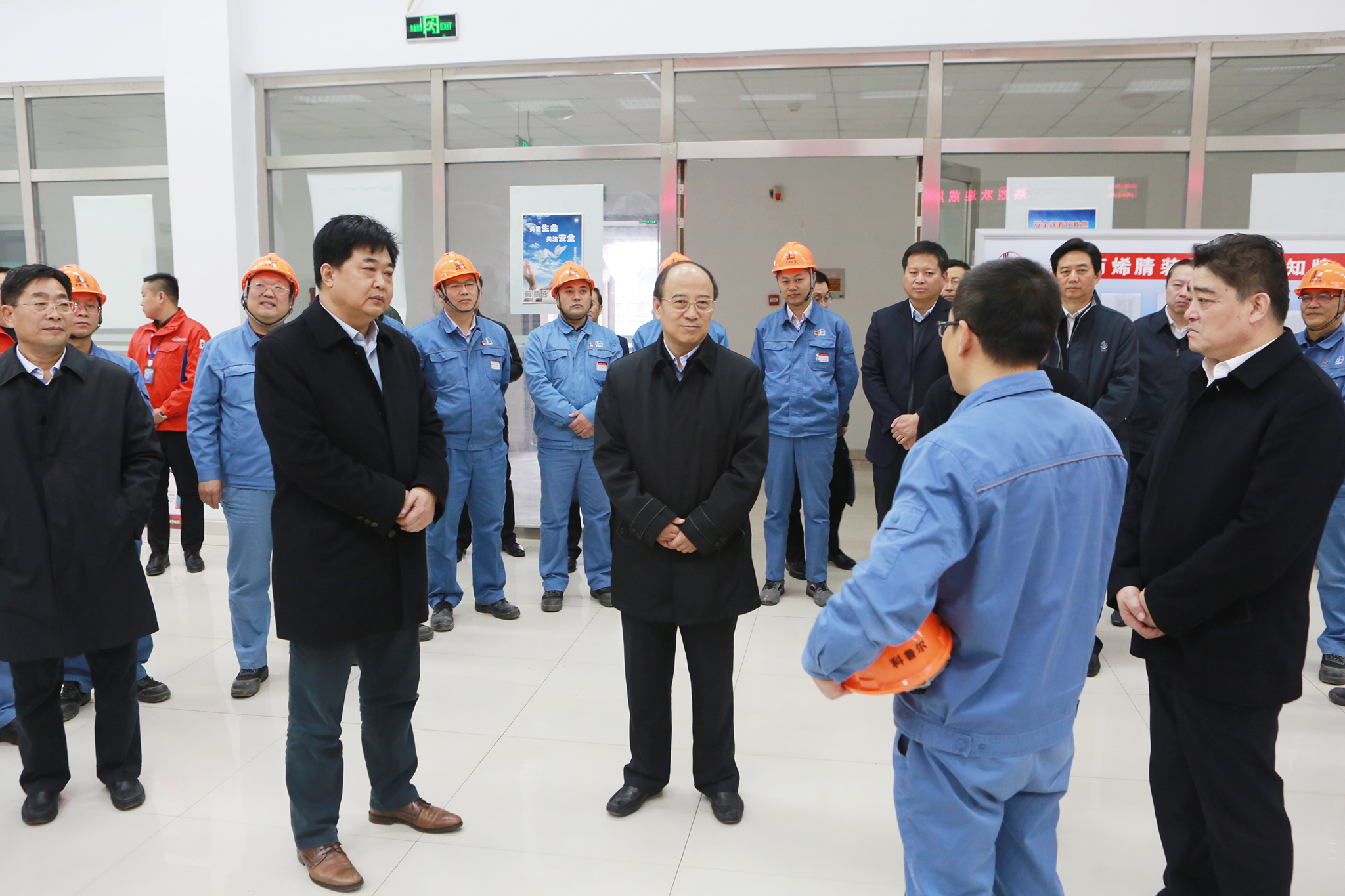 11月19日下午,中国石油化工集团公司董事长戴厚良来到中国石化与中国万达合资建设的混合所有制企业——山东科鲁尔化学有限公司,看望齐鲁石化在此工作的员工,并视察了丙烯腈装置现场,详细了解企业生产经营情况和二期项目进展情况。东营市领导市委副书记代市长赵志远、中国石化齐鲁石油化工公司总经理韩峰、中国万达集团董事局主席尚吉永陪同调研。