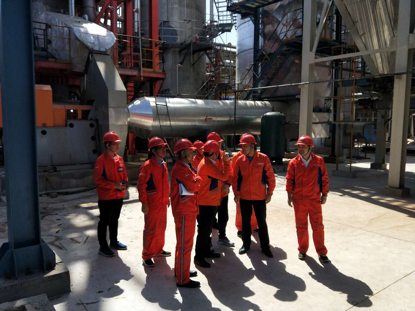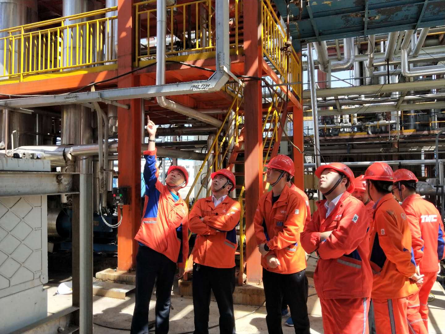 5月6日上午,万达石化集团组织开展了厂区大气污染防治专项检查工作,本次检查由集团公司副总裁,石化集团执行总裁李增刚带队,集团公司总裁助理、天弘公司董事长李东波,天弘公司总经理邓宗明,宏旭公司总经理黄洪晓,石化集团安全环保事业部总监张伟等领导参加检查。