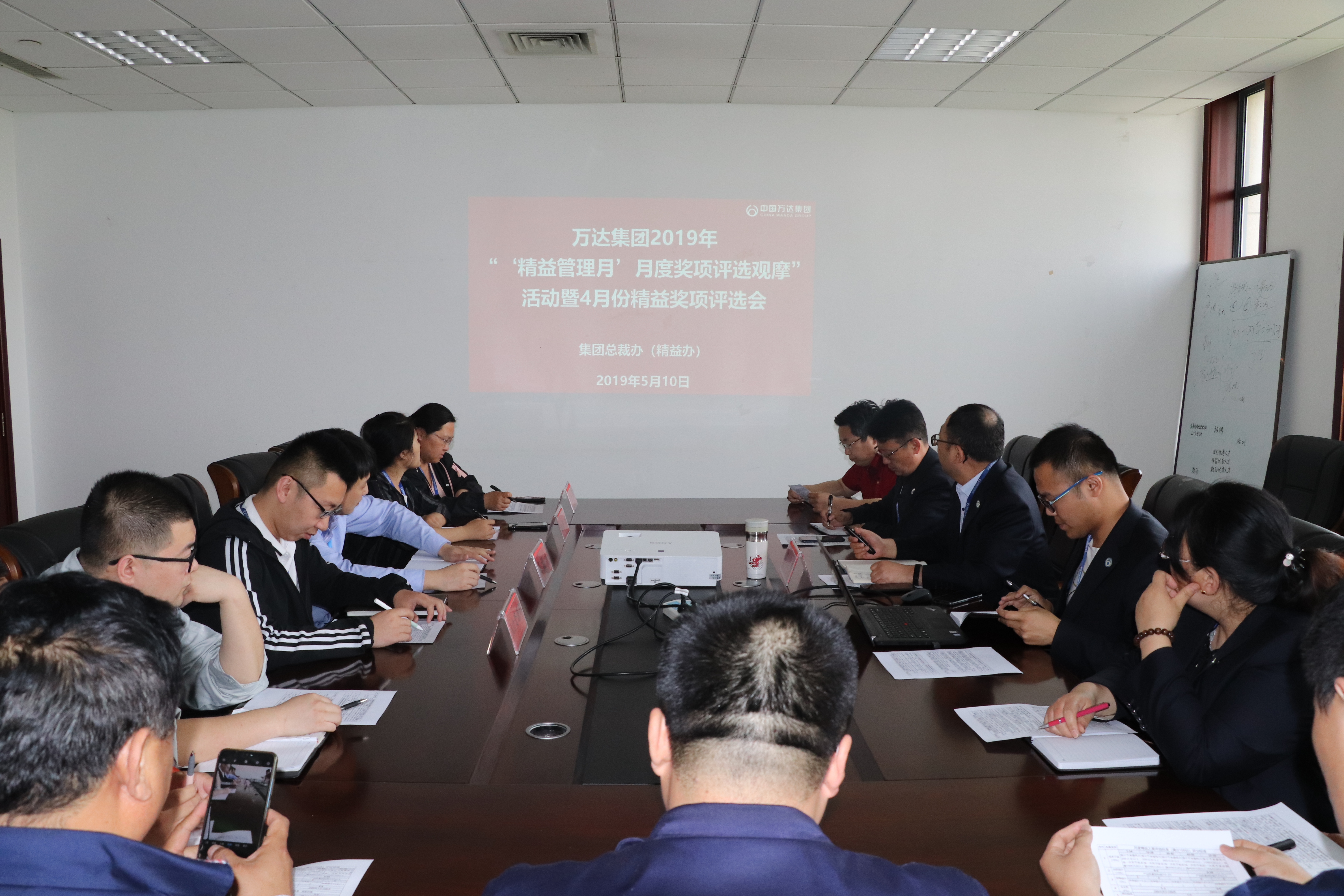 5月10日下午2:00,在万达大厦602会议室,总裁办“精益办”协同财务公司、审计部、集团办、集团人力资源部组织“精益管理月”专项活动“月度奖项评选观摩”暨4月份精益奖项评选会。