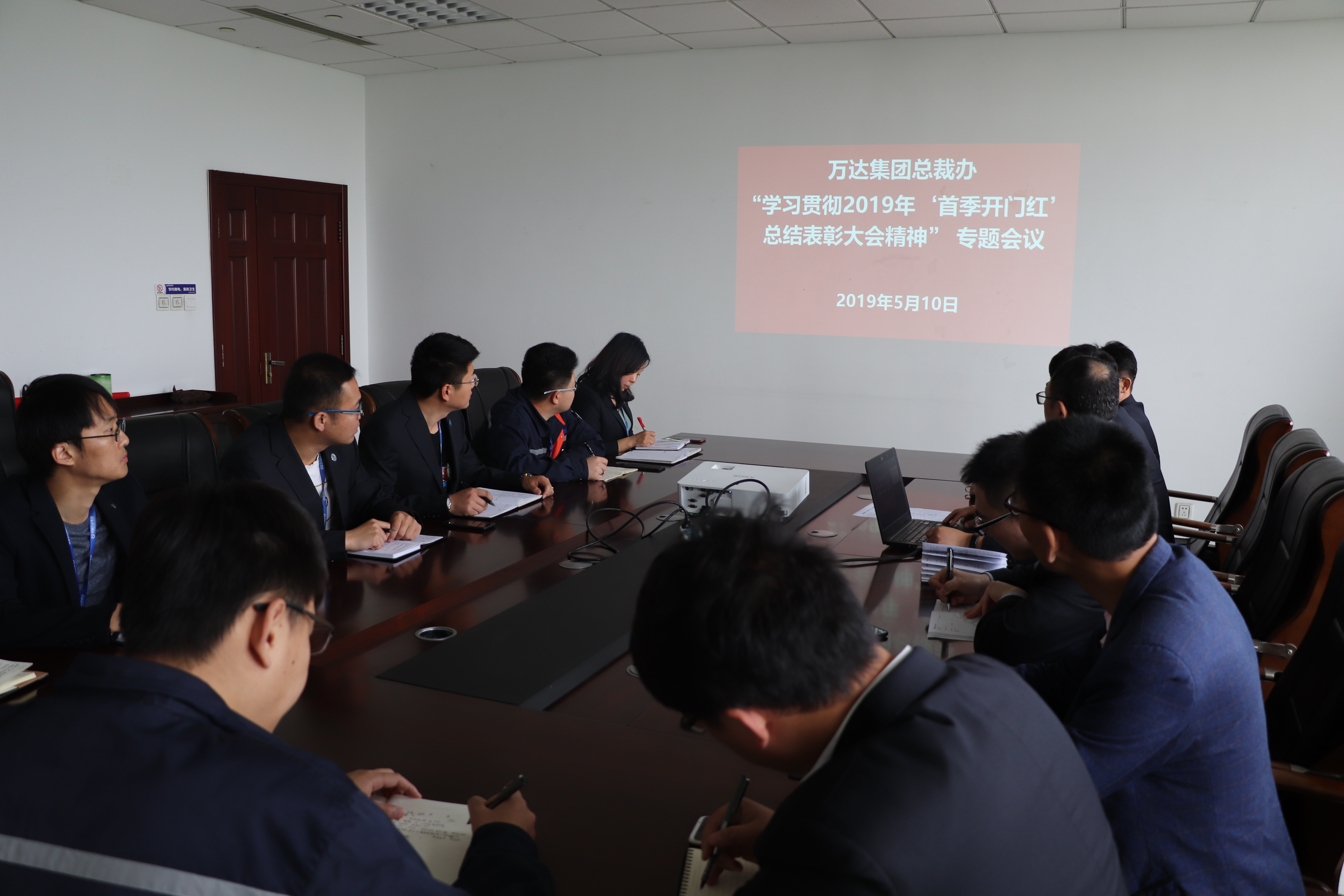 会上,曲总传达了“首季开门红”总结表彰大会的会议精神,带领大家共同学习了尚主席在“首季开门红”总结表彰大会上的讲话内容及一季度工作报告。曲总对下一步工作重点进行了部署:一是 强化精益管理,全面抓好《万达集团2019年精益管理实施方案》的落地执行及“精益管理月”各项活动的开展;二是 充分发挥好公司“专家智库”设备专家作用,抓好工艺改进;三是 强化与外部知名律所及主管机构的沟通对接,规避化解经营风险;四是 抓好督导考核,确保工作实效。