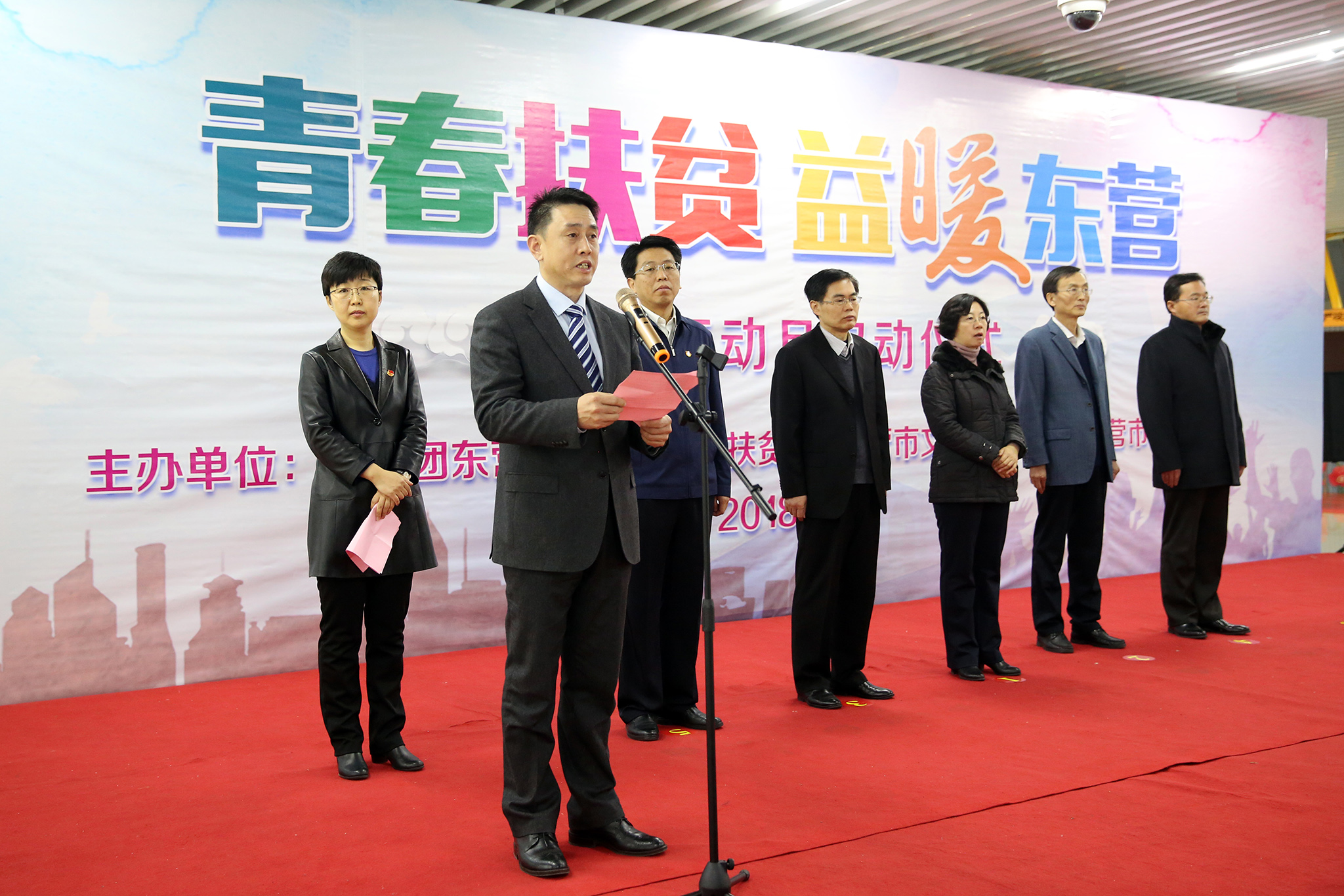 1月20日上午,团市委、市扶贫办、市文化活动中心联合在全市部署开展“青春扶贫∙益暖东营”集中行动启动仪式在东营市科技馆举行。市委领导,市扶贫办、团市委、市文化活动中心、市红十字会等部门单位领导,各县区团委书记,部分乡镇团委书记,青年志愿者、青少年代表,爱心企业代表共计150余人参加活动,团市委书记王燕主持活动,副书记徐长青介绍集中行动有关情况,万达集团作为捐赠方代表发言,捐赠10万元公益资金。
