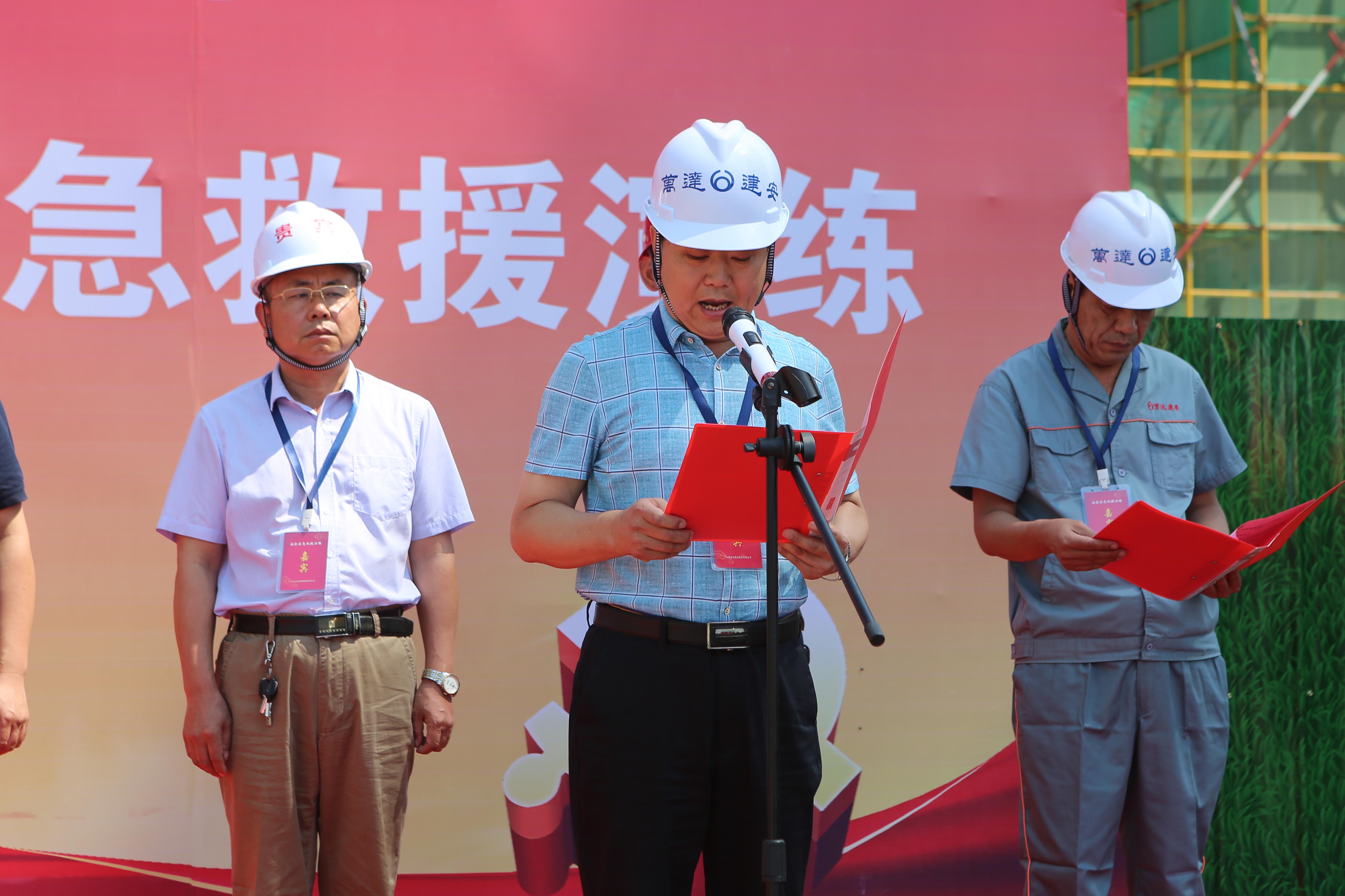 集团公司副总裁、万达建设集团董事长尚吉刚做应急预案演练动员讲话。